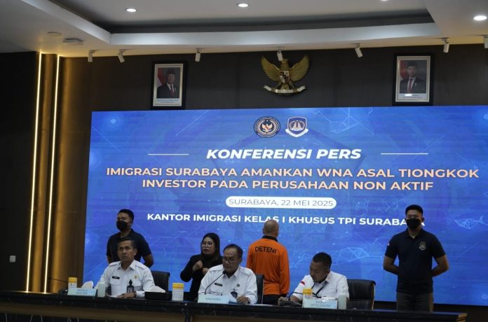 Surabaya – Kantor Imigrasi Kelas I Khusus TPI Surabaya melalui Bidang Intelijen dan Penindakan Keimigrasian berhasil mengamankan seorang Warga Negara Asing (WNA) asal Tiongkok berinisial DC yang diduga melakukan pelanggaran keimigrasian dengan menggunakan data palsu untuk memperoleh izin tinggal di Indonesia.(22/5)