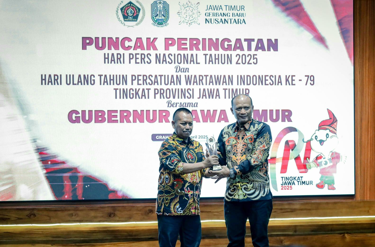 SURABAYA – Puncak Hari Pers Nasional (HPN) 2025 dan Hari Ulang Tahun ke-79 PWI tingkat Jawa Timur digelar di Gedung Negara Grahadi, Senin 28 April 2025 malam.