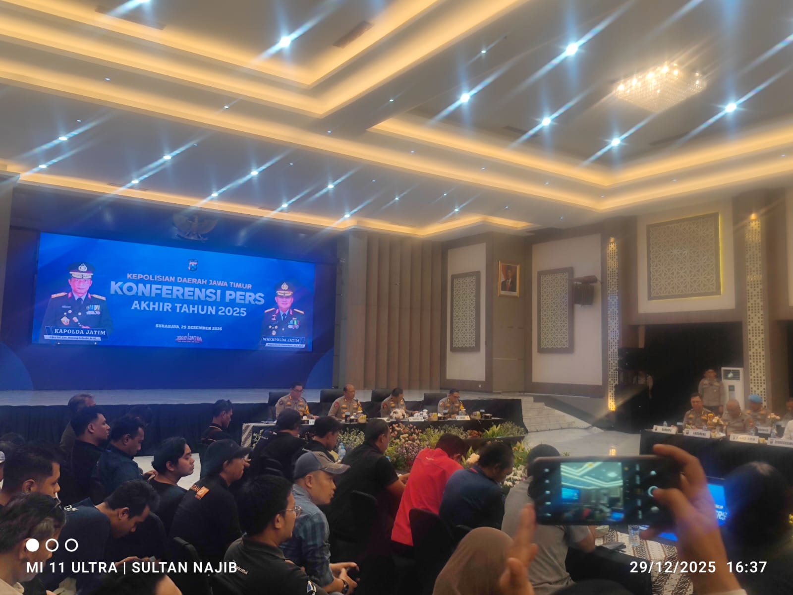 Hal tersebut disampaikan dalam Konferensi Pers Akhir Tahun 2025 Polda Jawa Timur yang dipimpin langsung oleh Kapolda Jawa Timur Irjen Pol. Drs. Nanang Avianto, M.Si., didampingi Wakapolda Jatim Brigjen Pol. Pasma Roice, dan seluruh PJU Polda Jatim. Kegiatan Analisa dan Evaluasi (Anev) tersebut digelar di Gedung Mahameru Polda Jatim, Senin (29/12/2025) sekitar pukul 14.30 WIB.