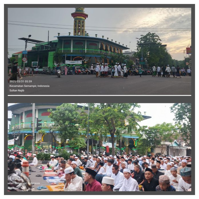 Surabaya – Ribuan jamaah memadati masjid-masjid di Kota Surabaya untuk melaksanakan Sholat Idul Fitri pada Senin (31/3/25). Salah satu masjid yang menggelar Sholat Id adalah Masjid Roudlotus Sholihin di Jalan Sidorame No. 2, Semampir, Surabaya.