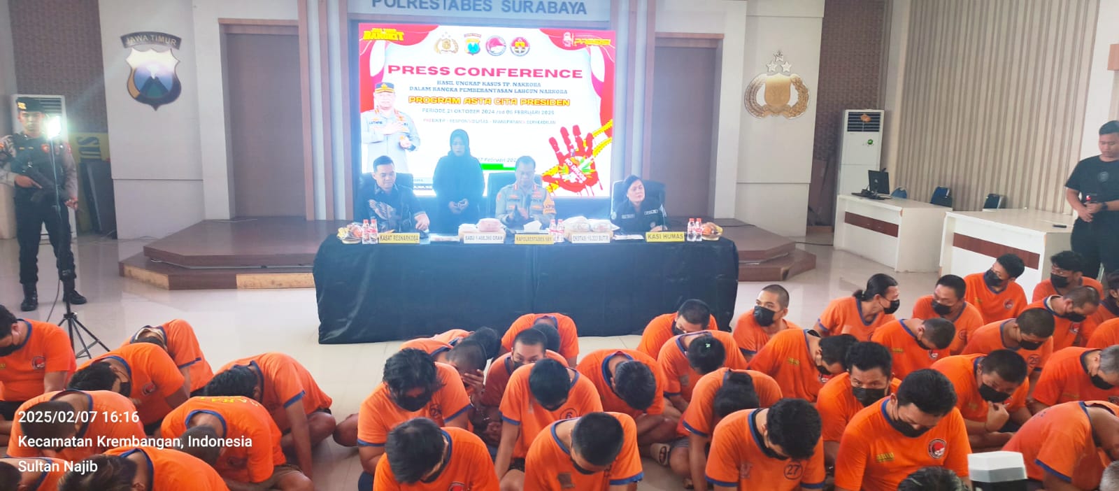 Kapolrestabes Surabaya menyampaikan bahwa dalam periode tersebut, polisi telah menangkap 323 tersangka dengan total 236 kasus. Dari jumlah tersebut, sekitar 30% di antaranya merupakan residivis yang kembali terlibat dalam peredaran narkoba.