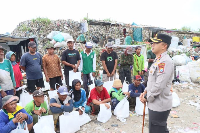 Sebanyak 30 pemulung yang sehari-hari mencari nafkah di TPA Pojok menerima bantuan berupa paket sembako dan uang saku sebagai bentuk kepedulian Polres Kediri Kota terhadap masyarakat yang membutuhkan.