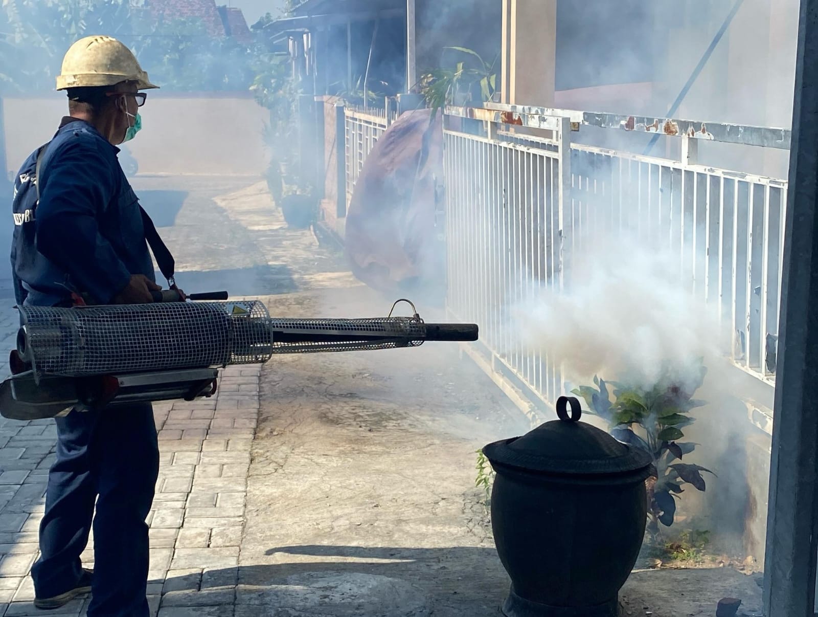 Blitar – Petugas kesehatan Puskesmas Sananwetan kembali melakukan fogging di wilayah Kelurahan Karangtengah Kota Blitar, setelah ditemukan adanya indikasi kasus Demam Berdarah Dengue (DBD). Upaya fogging dilakukan untuk menekan penyebaran virus DBD dengan membunuh nyamuk dewasa.